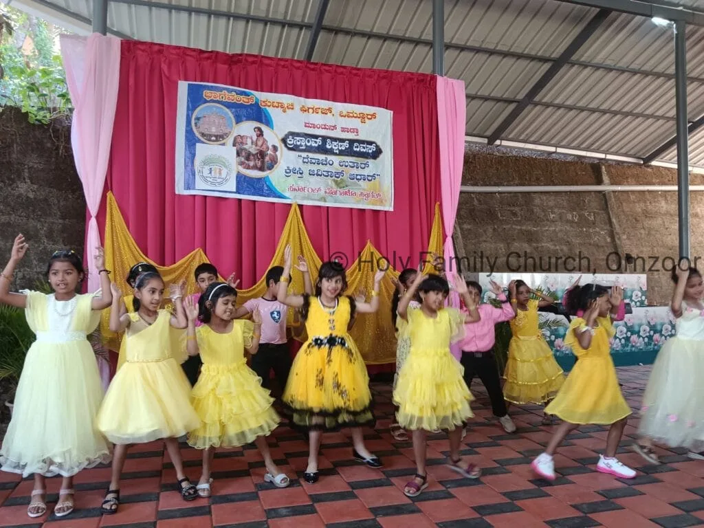 Following the Holy Mass, a vibrant cultural programme was held in the church hall. Students from Class I to PUC presented a variety of performances, showcasing their talents and reflecting Christian values through songs, dances, skits, and meaningful messages.