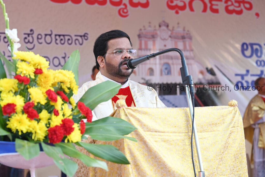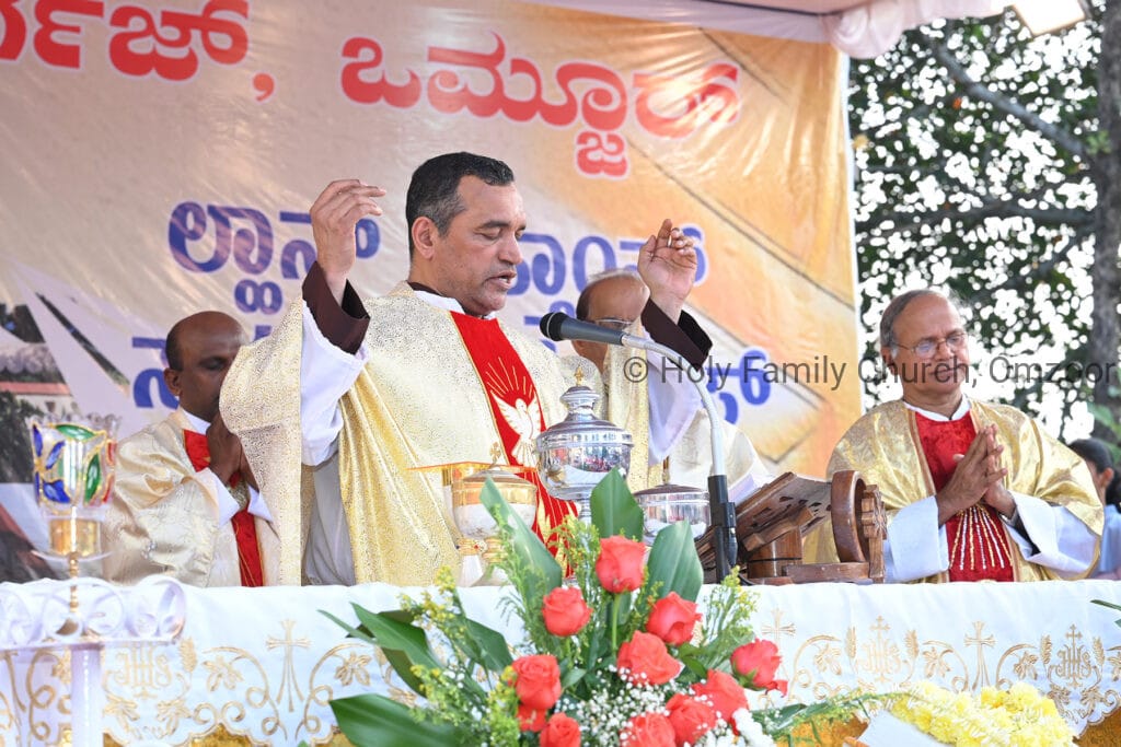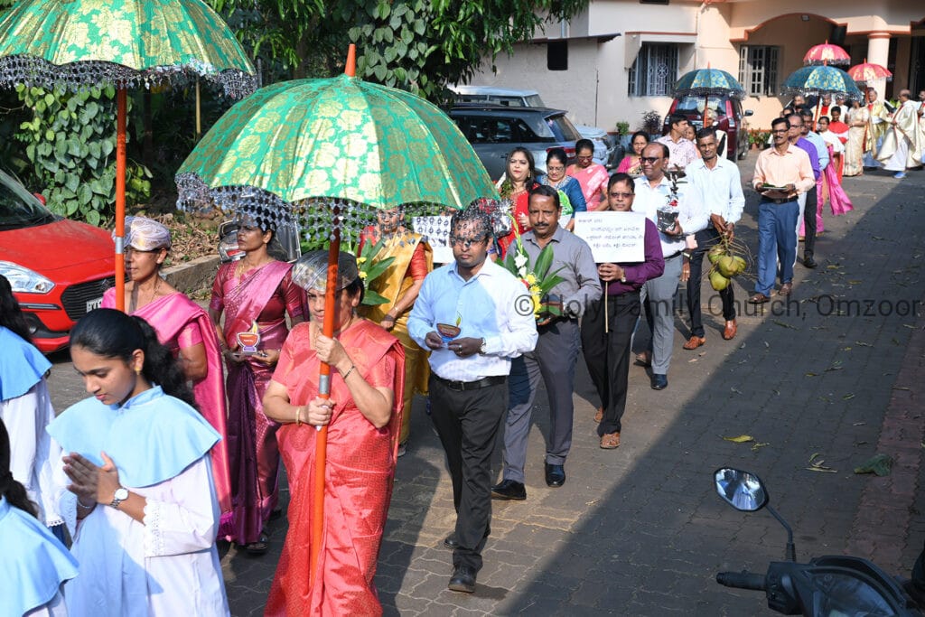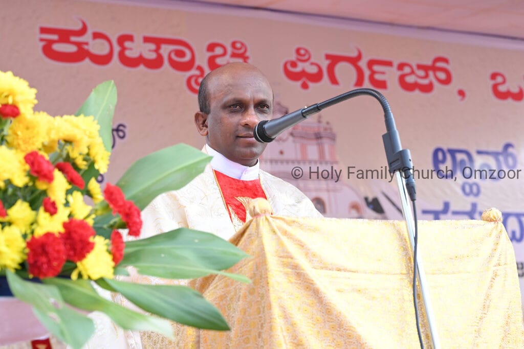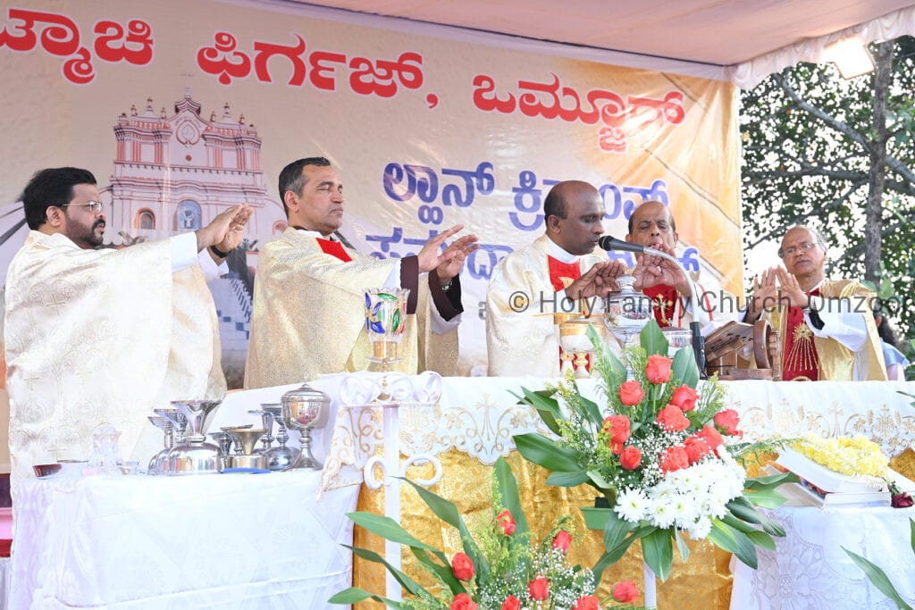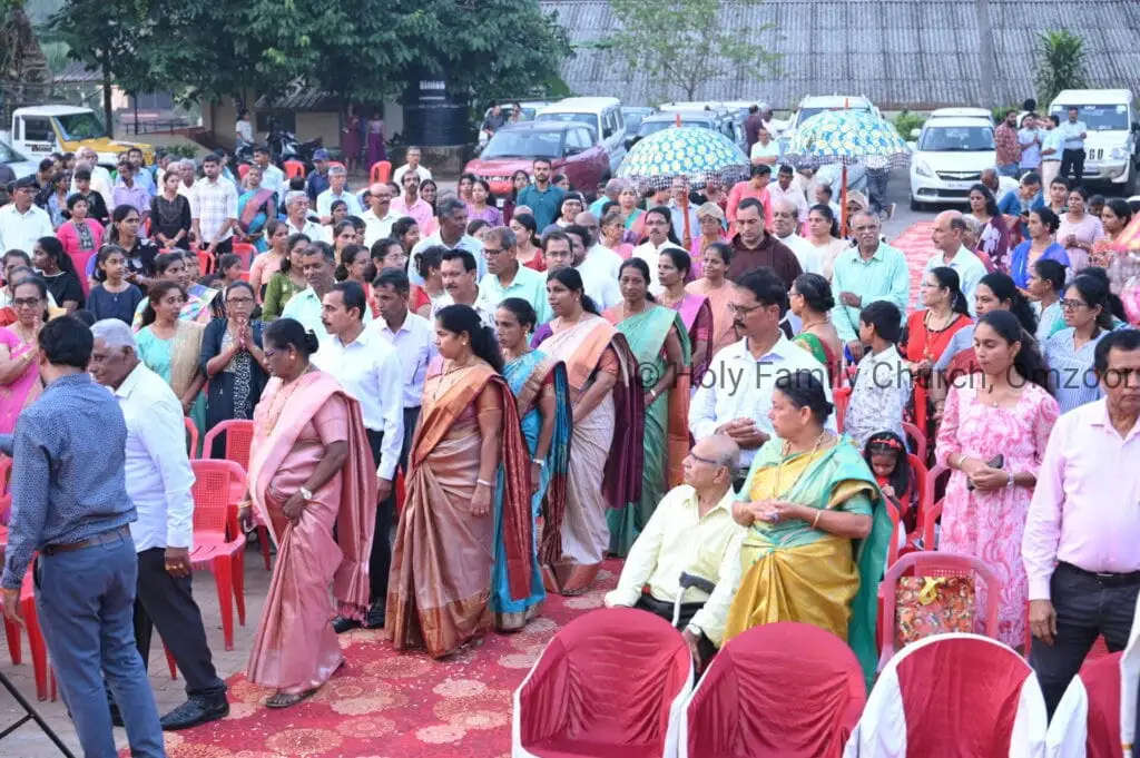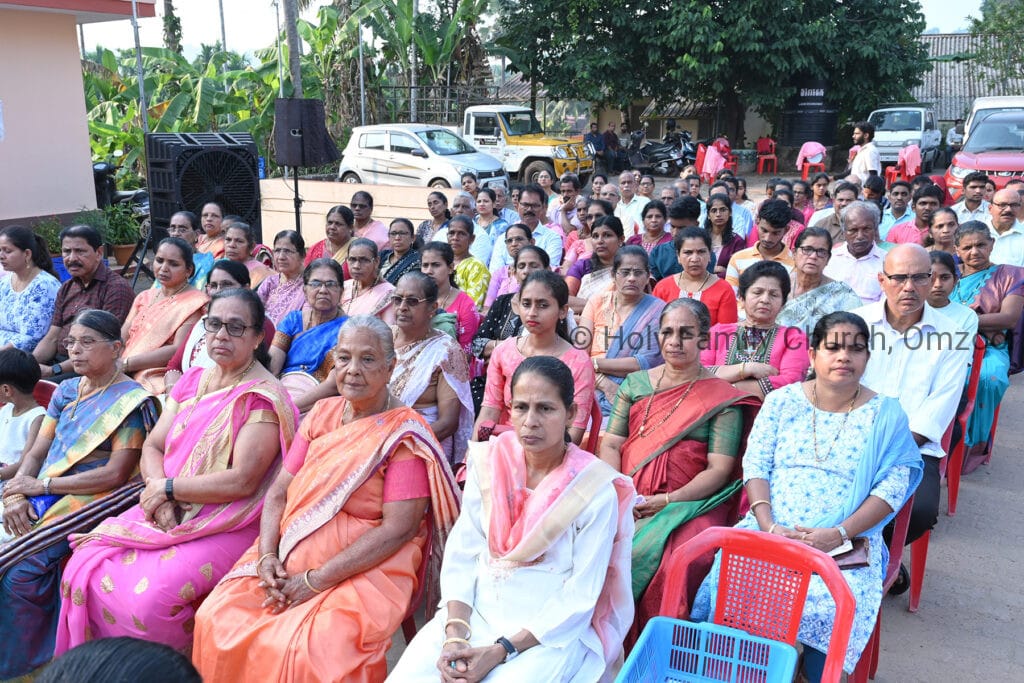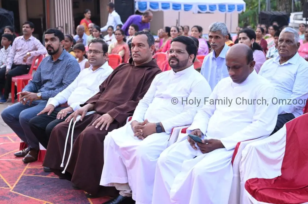 The Holy Mass was presided over by Fr Sunil George D’Souza, director of the Small Christian Community, Mangalore diocese. He was assisted by Fr William Menezes, parish priest of Holy Family Church, Omzoor, Fr Victor D’Souza, resident priest of the parish, Fr Robert Lasrado and Fr Jerald OMF Cap, as co-celebrants. Their presence added grace and solemnity to the occasion.