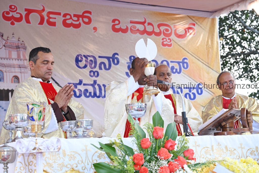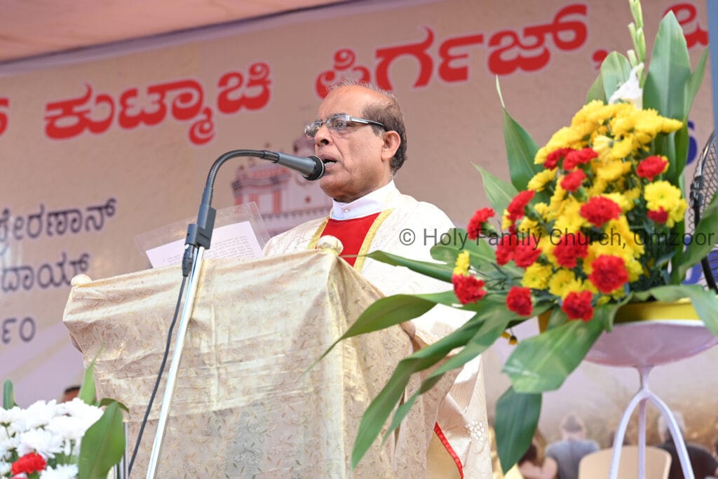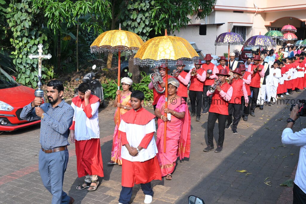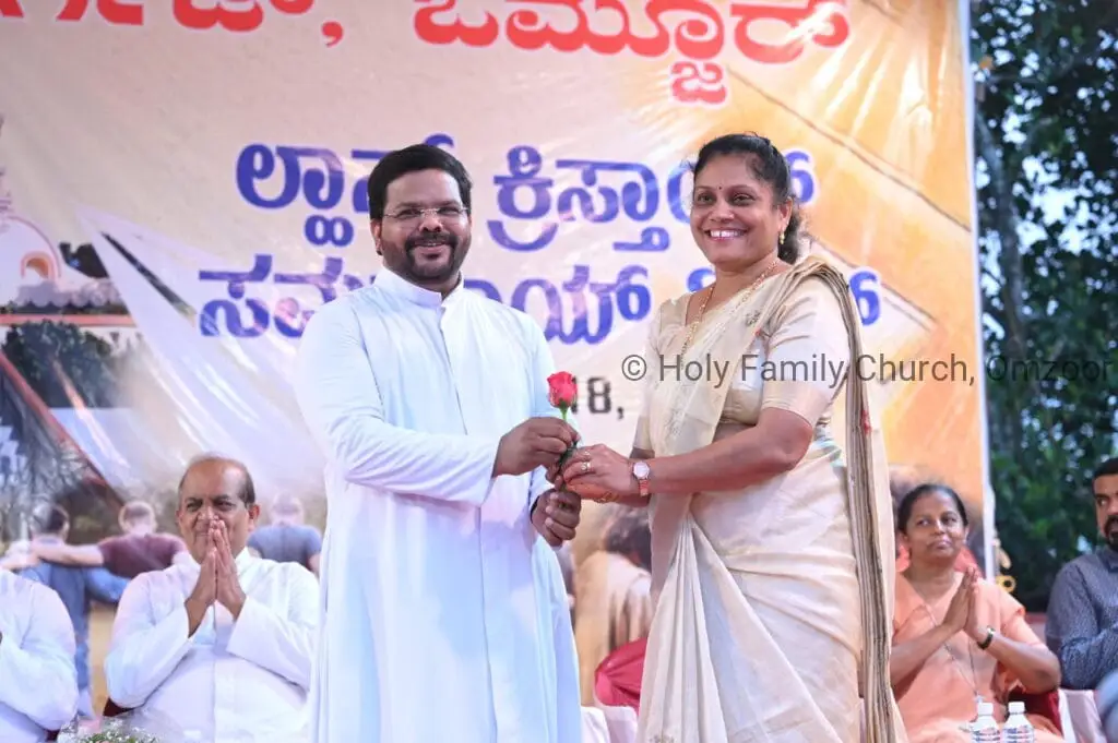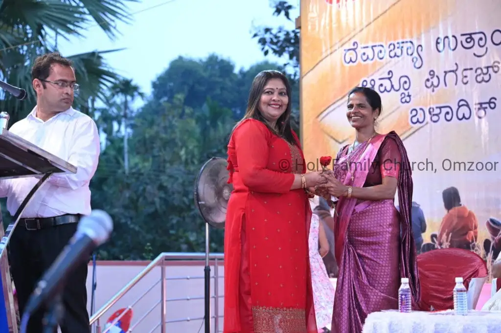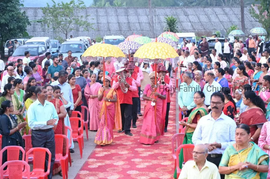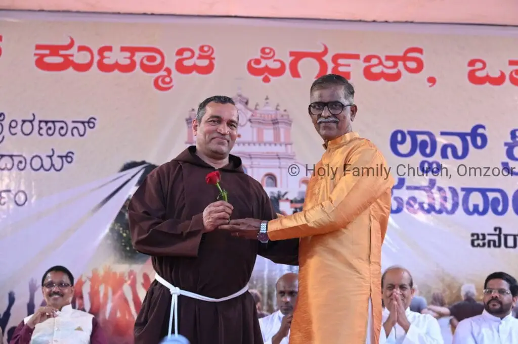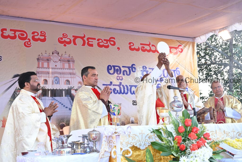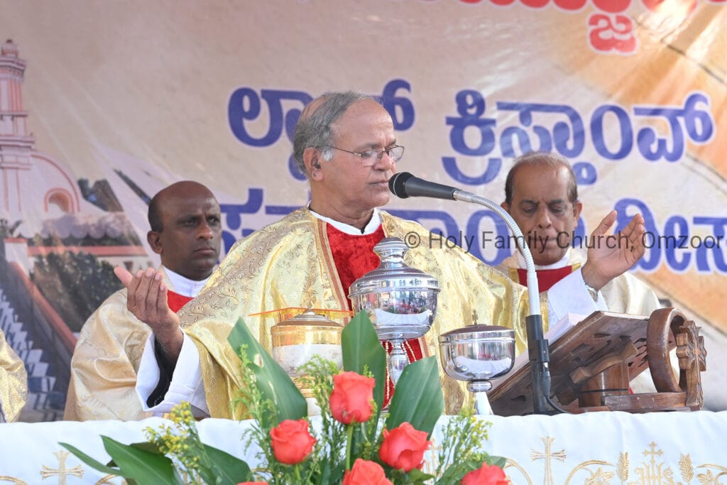 The Holy Mass was presided over by Fr Sunil George D’Souza, director of the Small Christian Community, Mangalore diocese. He was assisted by Fr William Menezes, parish priest of Holy Family Church, Omzoor, Fr Victor D’Souza, resident priest of the parish, Fr Robert Lasrado and Fr Jerald OMF Cap, as co-celebrants. Their presence added grace and solemnity to the occasion.