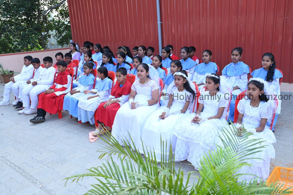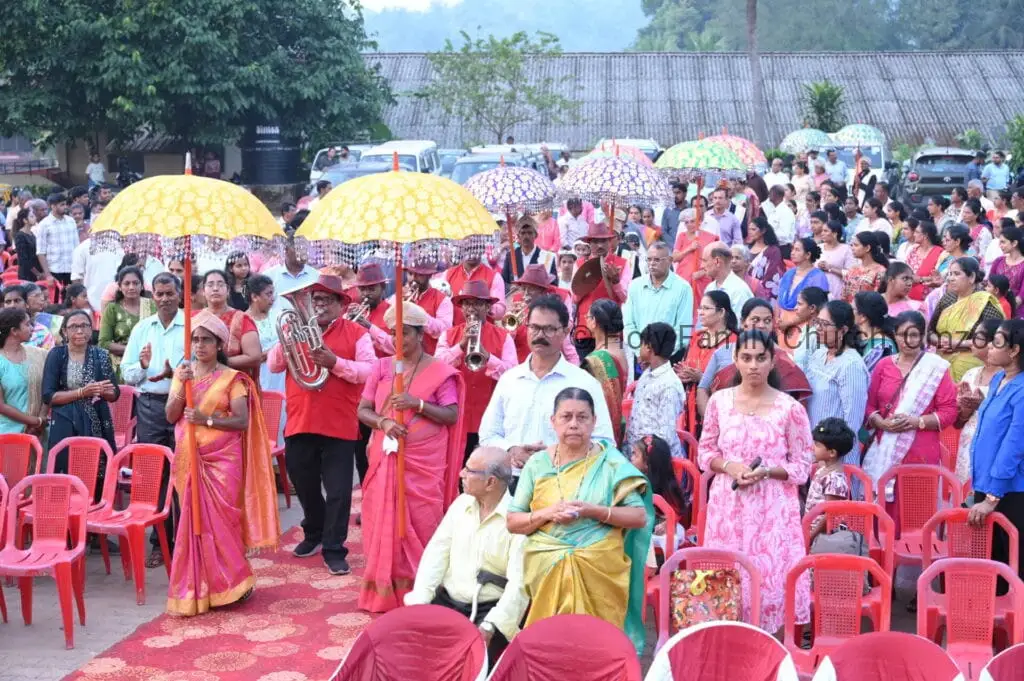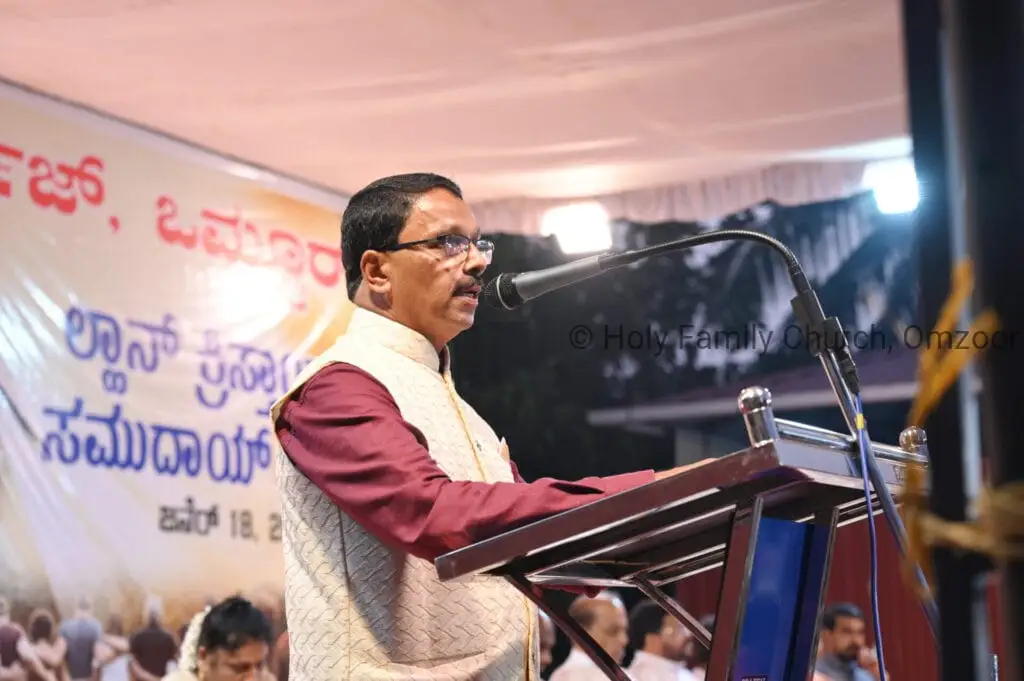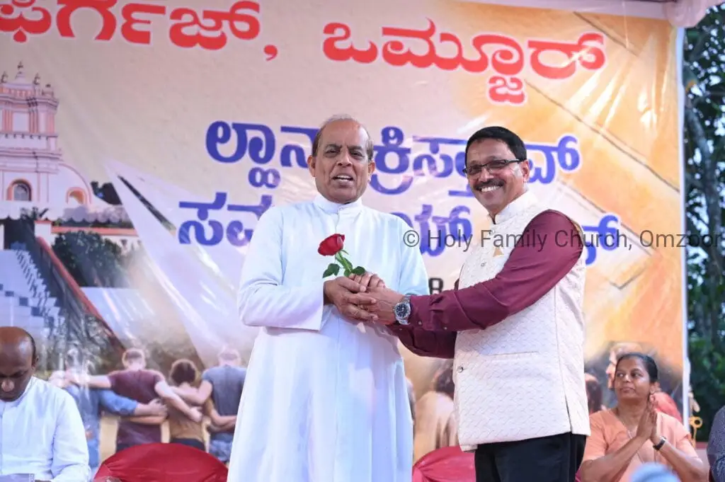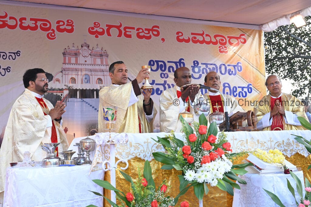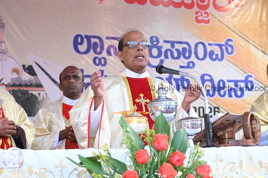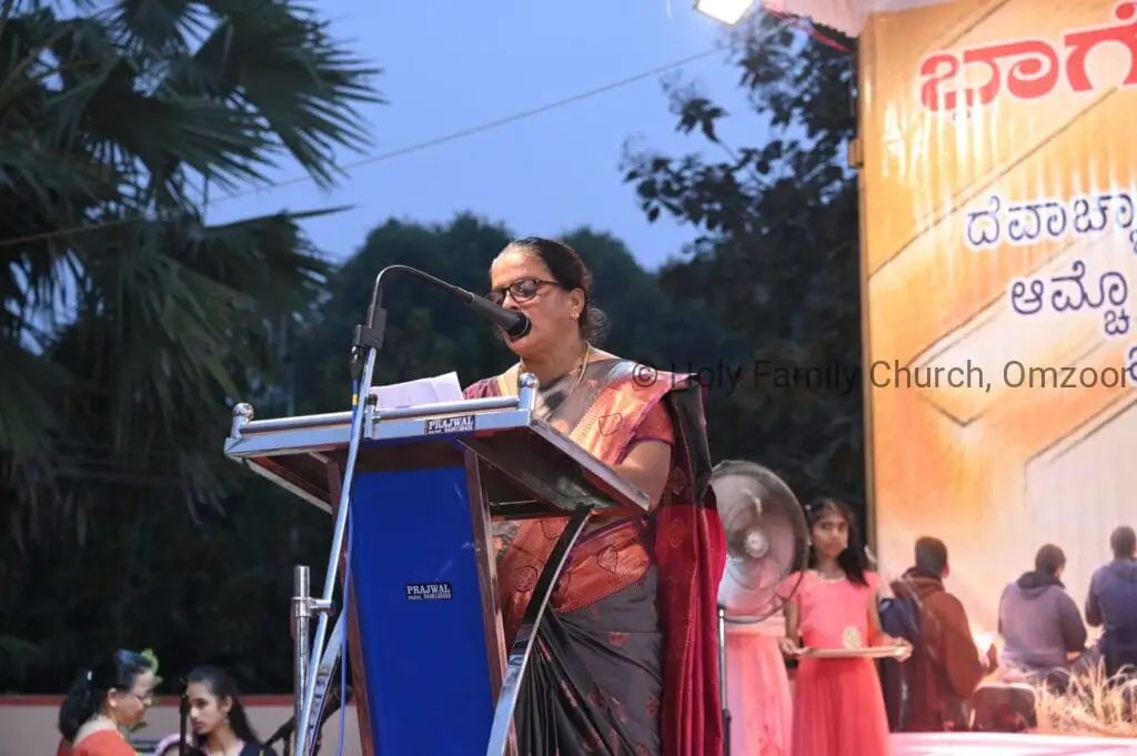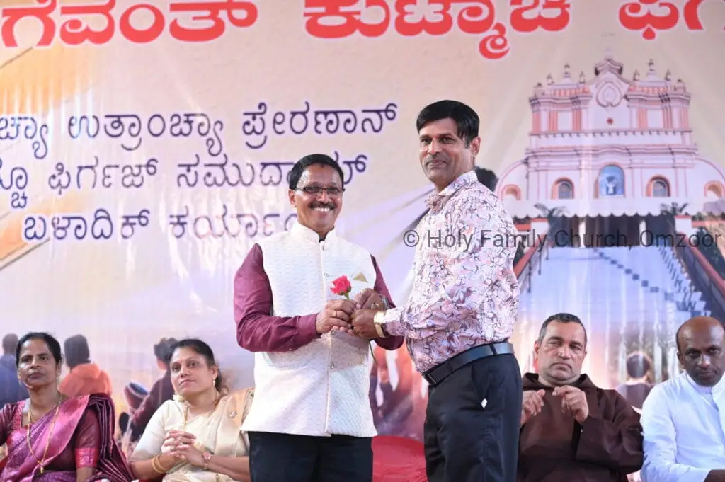 The Holy Mass was presided over by Fr Sunil George D’Souza, director of the Small Christian Community, Mangalore diocese. He was assisted by Fr William Menezes, parish priest of Holy Family Church, Omzoor, Fr Victor D’Souza, resident priest of the parish, Fr Robert Lasrado and Fr Jerald OMF Cap, as co-celebrants. Their presence added grace and solemnity to the occasion.