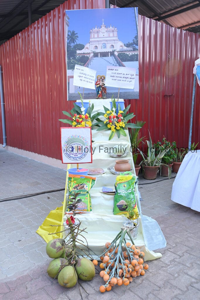 The Eucharistic celebration began with a meaningful and symbolic procession led by the Gurkars of the parish. They carried vegetables, fruits, flowers, and other produce grown in their own fields, along with the idol of the Holy Family. This simple yet profound gesture expressed heartfelt thanksgiving to God and highlighted the blessings of the parish patron, the Holy Family. It also reflected the lives of the parishioners, many of whom depend on agriculture for their livelihood, acknowledging God’s providence and abundant blessings.